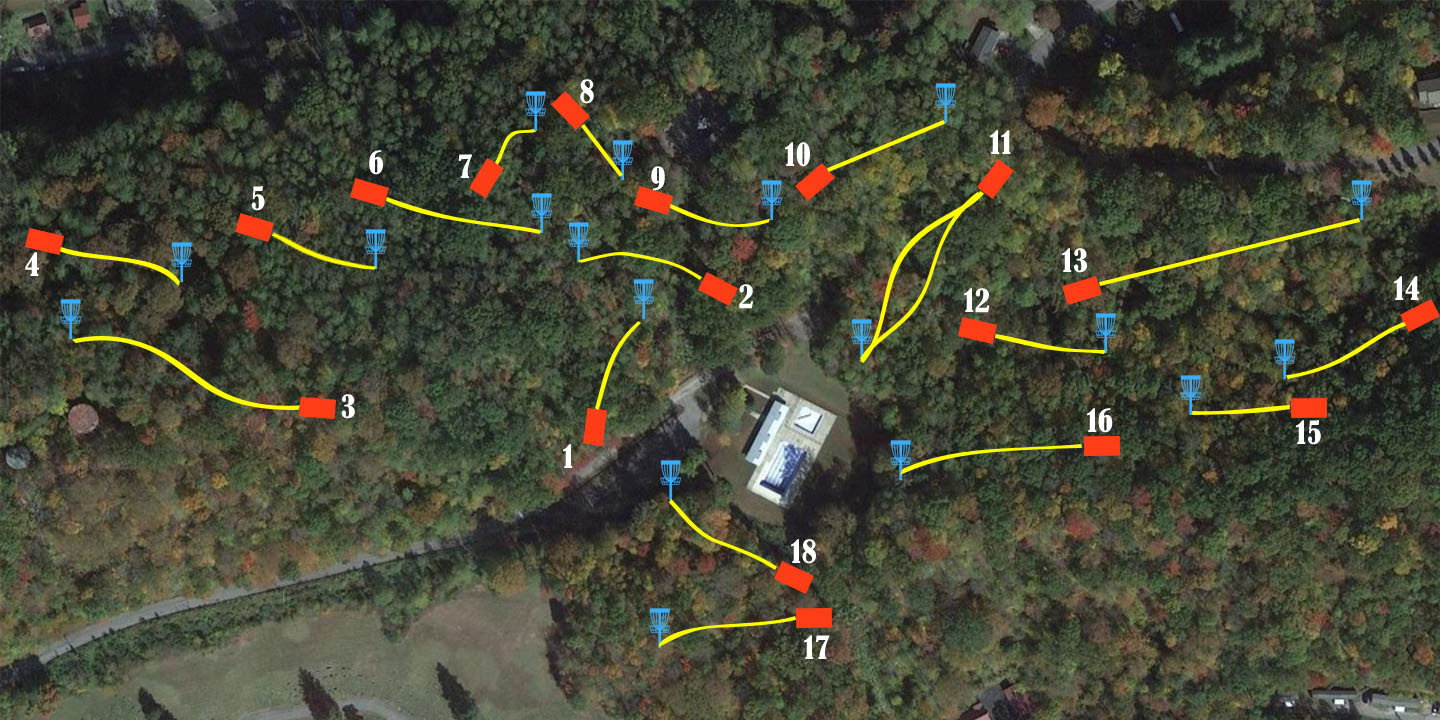 This is the main layout for the course. The course is entirely all in the woods. Once you enter the woods you don’t leave till you’re round is over so get ready to see some trees!