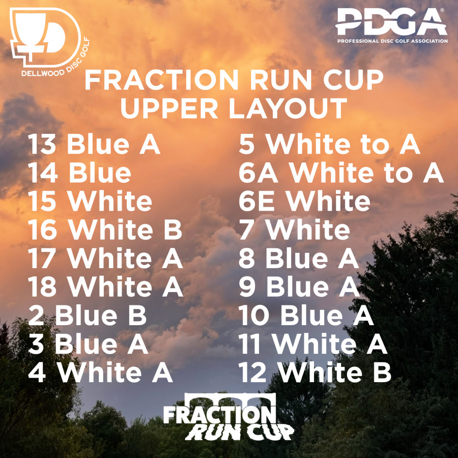 This is the Upper layout for the upcoming Fraction Run Cup 8, B-Tier at Dellwood on April 11th and 12th.