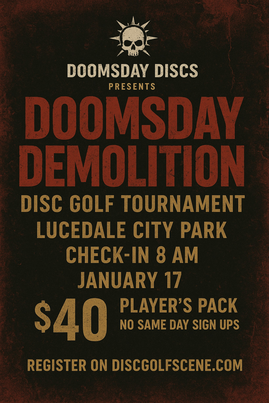Step into Doomsday Demolition, a one-round, three-disc tournament designed to test every aspect of your game — from finesse to firepower. Each player receives an exclusive players pack featuring three Doomsday Discs crafted for chaos and control alike: