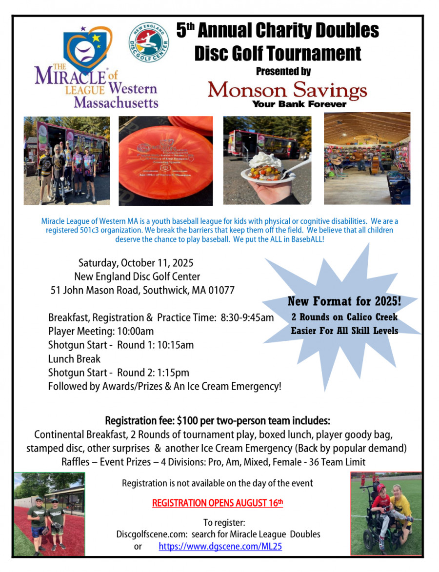 Proceeds will benefit The Miracle League of Western Massachusetts. https://miracleleaguewestma.com/