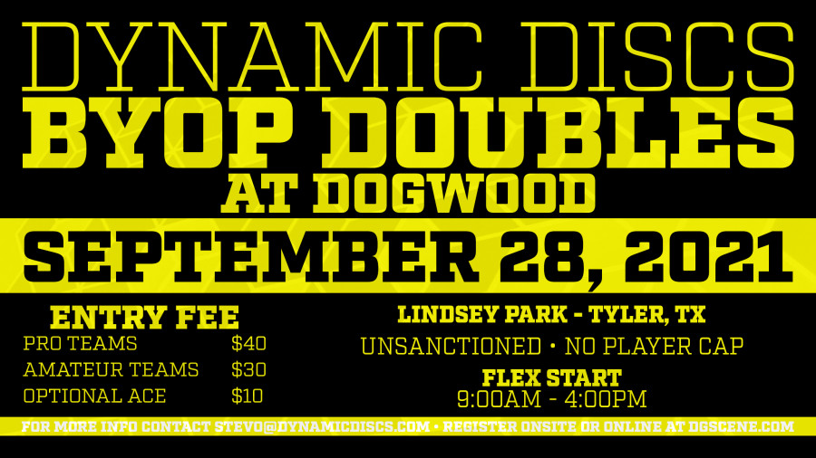 Any person may compete in a Dynamic Discs BYOP (Bring-Your-Own-Partner) Doubles event. Competitors DO NOT need to be current PDGA members to register. Participants are eligible to compete in any division for which they qualify based on age, rating, gender and class (professional or amateur based on PDGA guidelines). Dynamic Discs BYOP Doubles events do not award trophies nor do they offer a player’s package. Dynamic Discs BYOP Doubles events offer 100% Payout to all divisions. Scores and registration are uploaded to a public google document periodically throughout each Dynamic Discs BYOP (Bring-Your-Own-Partner) Doubles event so competitors and the general public alike may follow participation, scores, and final results.