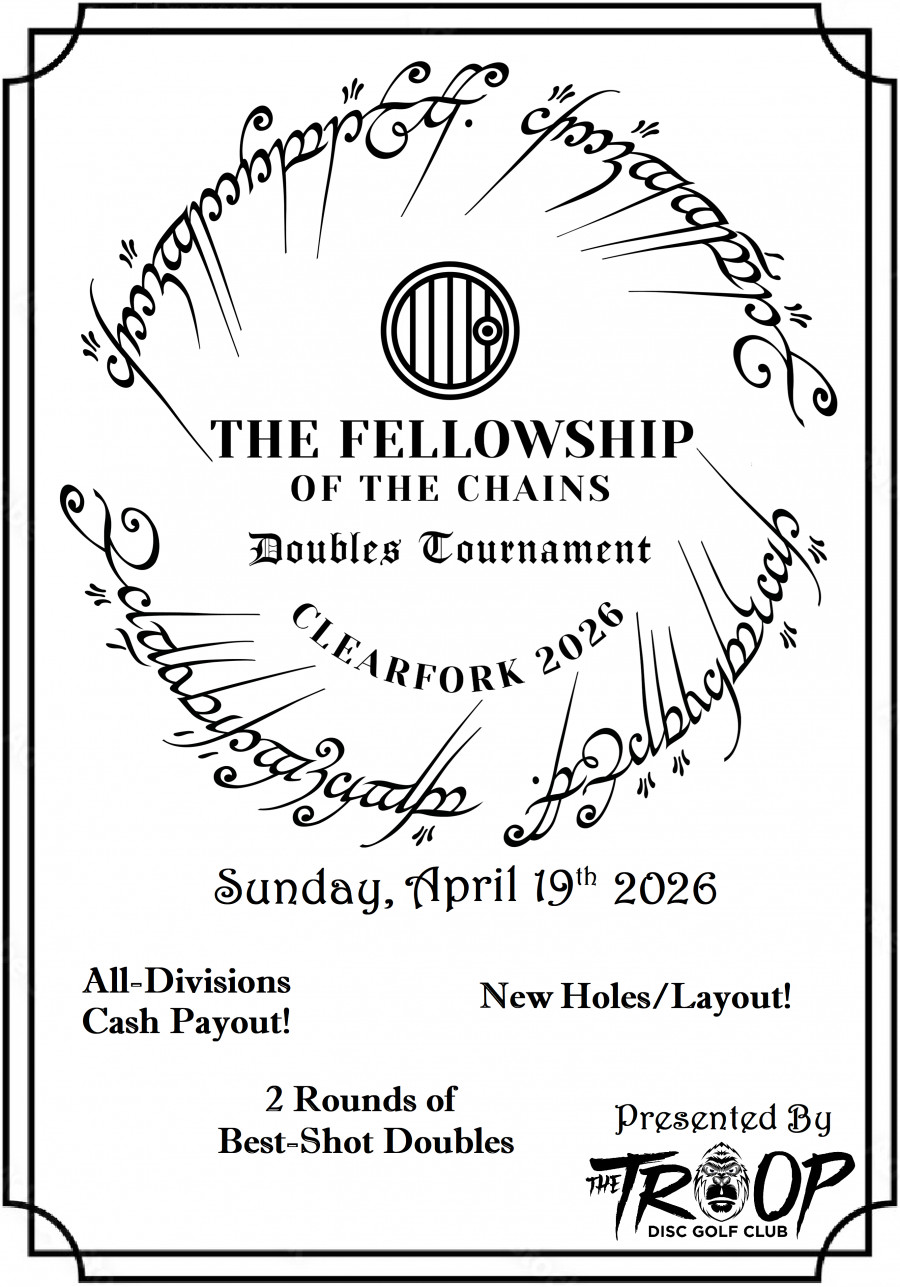 Join us for the 1st Annual BYOP tournament at Clearfork Reservoir; The Fellowship of the Chains.