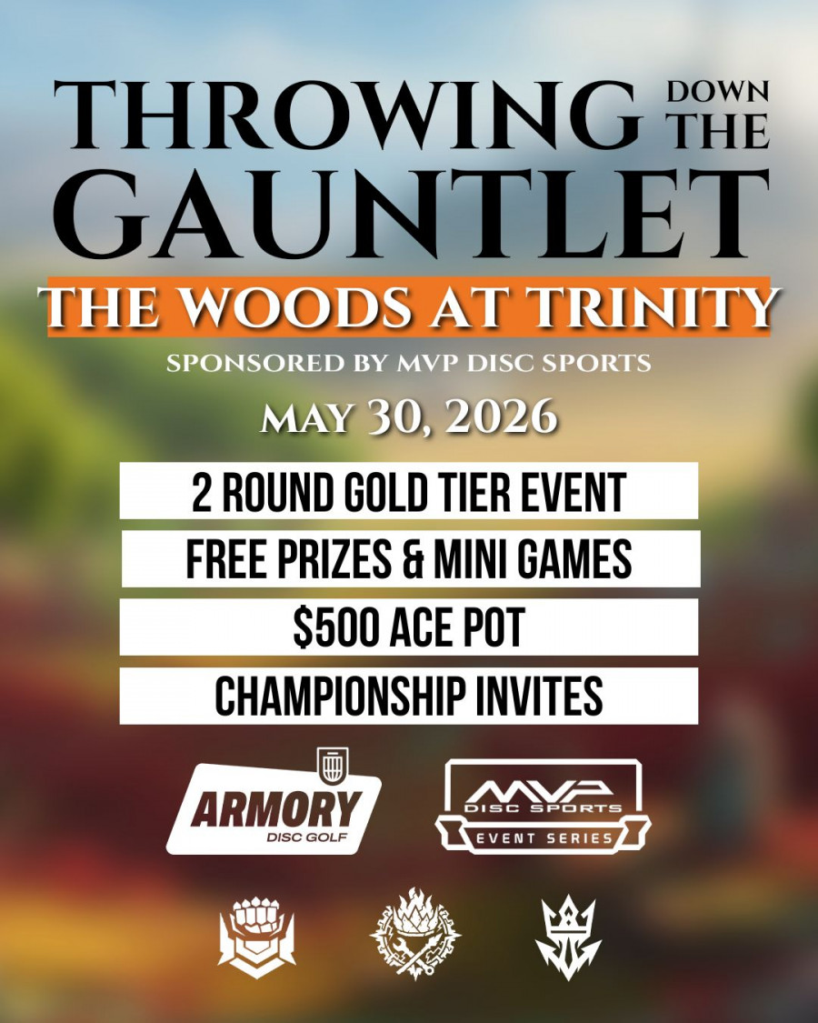 WELCOME to the Throwing Down the Gauntlet 2026 at The Woods at Trinity, an Armory Disc Golf Gold Tier Event Sponsored by MVP Disc Sports!