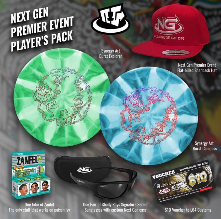 4th: ZUCA backpack cart, DGNomad Nite Chains, Keen half-off shoe card, Keen Towel, $250 in prizes from Premier Event onsite store, 2019 Next Gen Disc Golf team bid;