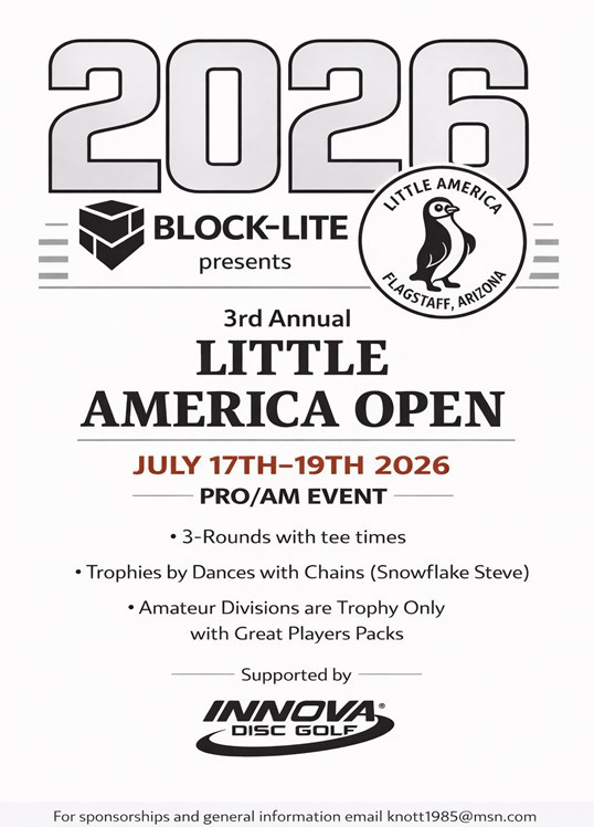 A special thank you goes to the Flagstaff Disc Golf Club for partnering with Block Lite and for their continued dedication to the sport. Their efforts have truly placed Flagstaff on the disc golf map, and we are fortunate to have such outstanding courses in our community. This event would not be possible without their commitment.