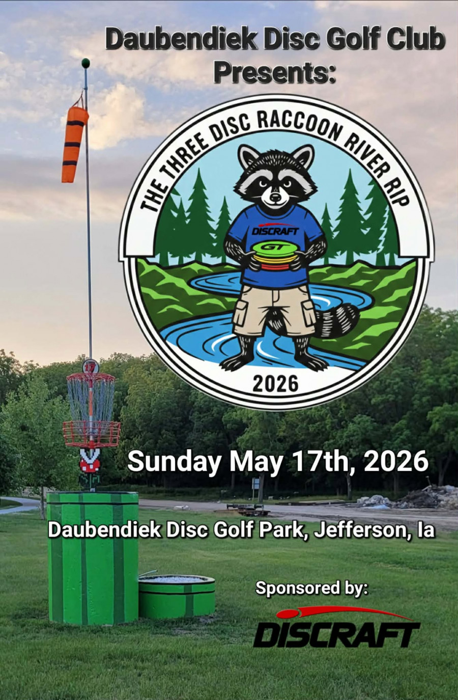 Daubendiek Disc Golf Club will be hosting a 3-disc challenge partnered with Discraft! Tons of extra prizes and goodies included.