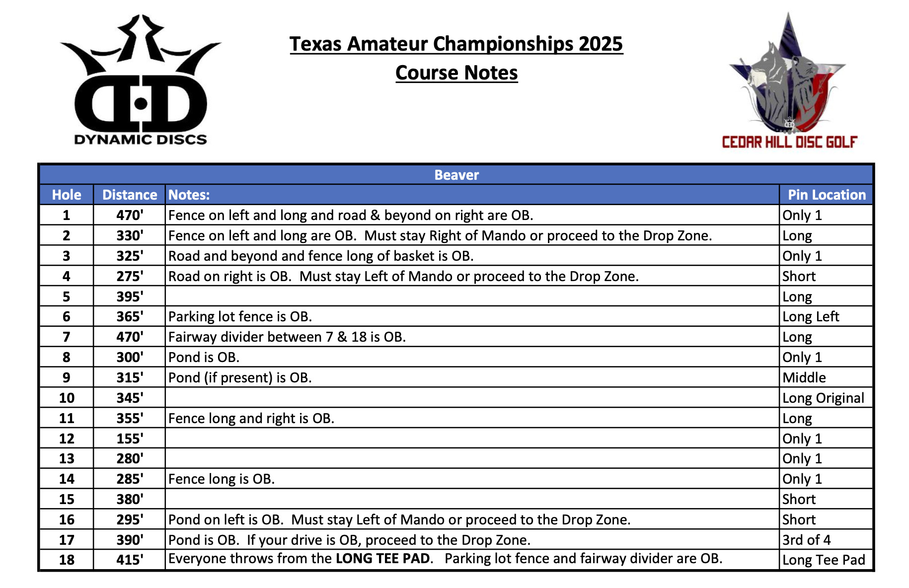 Dynamic Discs BYOP Doubles @ Cedar Hill's Beaver