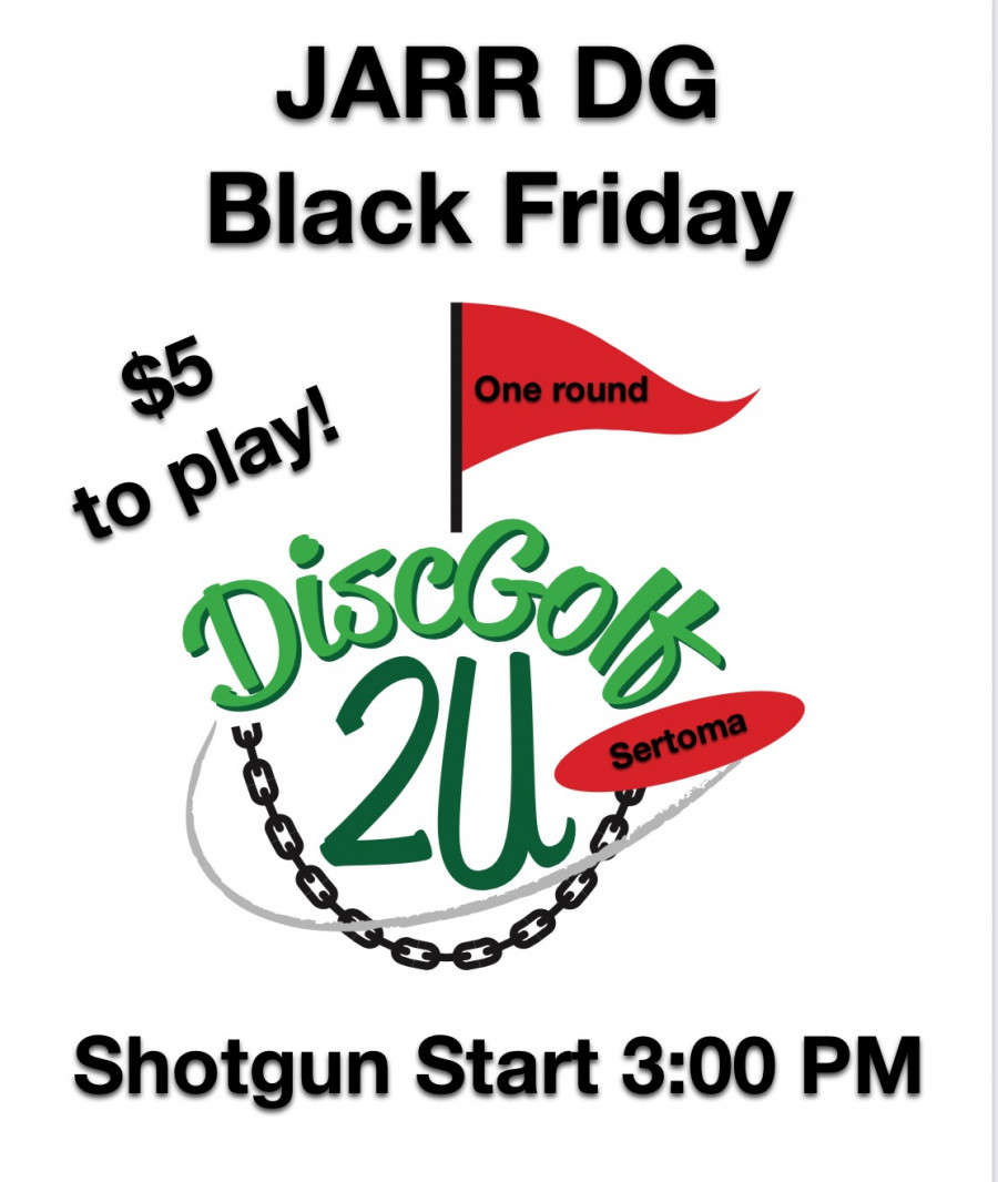 Black Friday at Sertoma Field presented by JARR DG. This is $5 to play. No player pack, no payout. Get in, get rated, get out. Tournament starts at 3:00 PM. We hope to have everyone headed home by 5:00 PM.