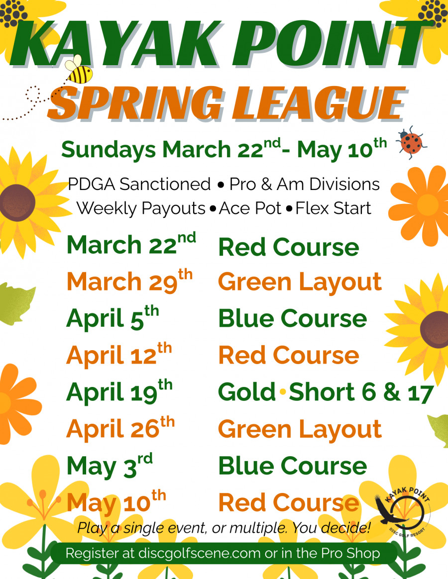 Join us for the 2026 Spring League @ Kayak Point Disc Golf Resort!
