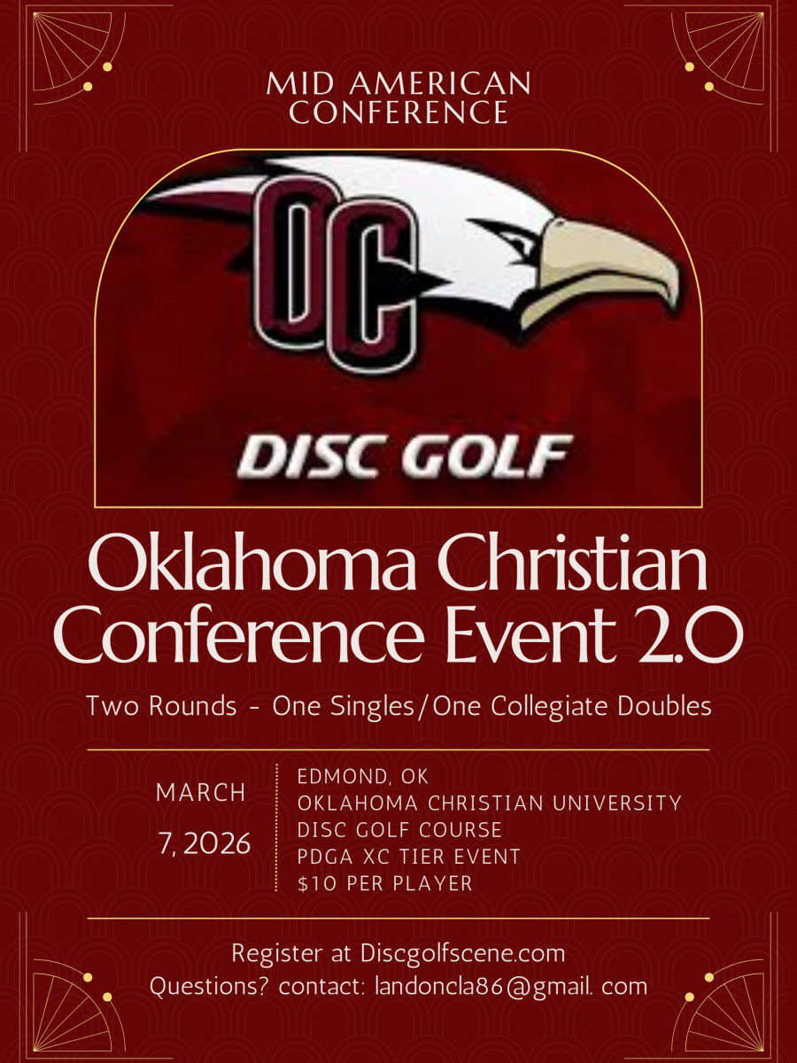This is a Collegiate conference event. Two rounds will be played at the Oklahoma Christian University disc golf course. Round 1 will be singles, Round 2 will be Collegiate Doubles.