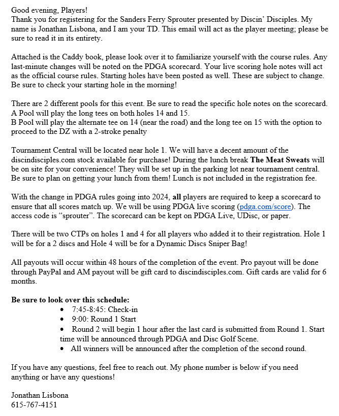 Sanders Ferry Sprouter Presented by Discin' Disciples