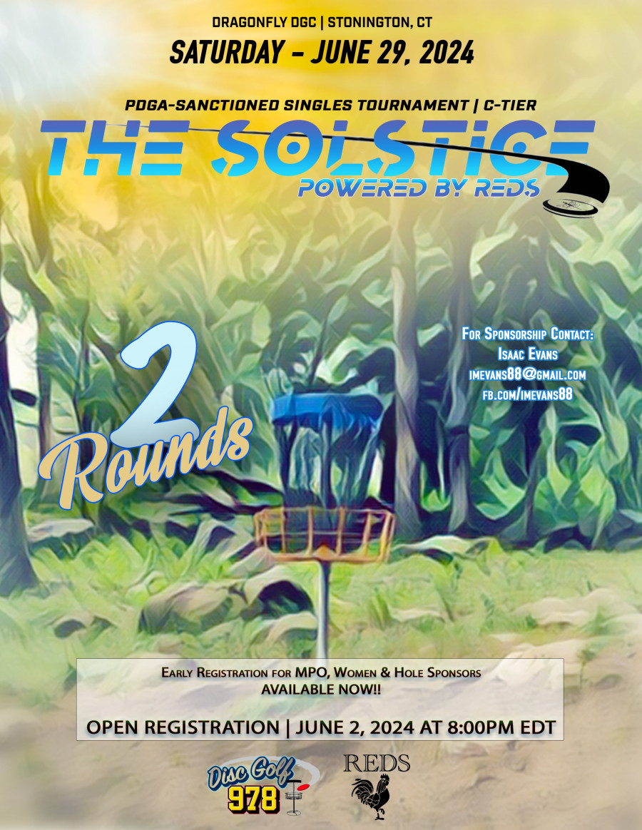 Bring in the Summer Solstice at Dragonfly Disc Golf! This 2nd Annual, 2 round tournament will showcase Dragonfly's newest layouts! All MPO & MA1 players will play both rounds from the long layout. FPO will play round 1 from longs and round 2 from D2. MA2, MA40 and FA1 will play round 1 from the “D2” layout, with round 2 on the OG layout. All other AMs will play round 1 from OG and round 2 from shorts. Juniors and Women will play 2 rounds on the short layout.